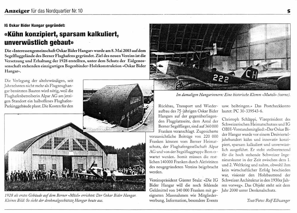 Aktive IG Oskar Bider Hangar Bern Airport 3/2005, S. 17 |